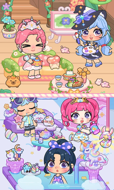 在艾拉的童话城堡里,每个场景都有精美的家具和小物件!可以随心和家具互动~弹钢琴 、在浴缸里泡澡,也可以拖动小物件到公主身上触发神奇的效果,比如吃东西、拿玩偶,快来和公主玩过家家,把家具的惊喜全“戳”出来吧~