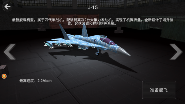 2、如下图,拥有对款战机能够使用,每一款战机都有不同的性能,玩家需要结合任务需求进行选择。