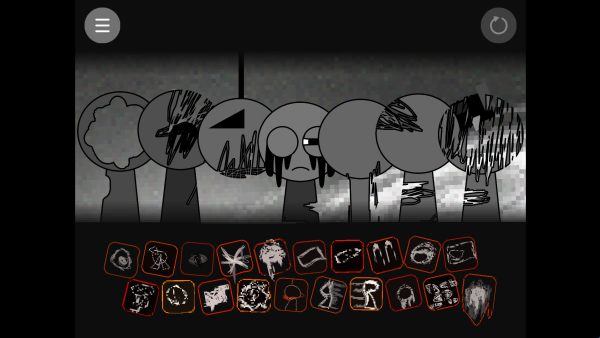 2、整体画风呈现虚无破坏,死气沉沉,这是一大特色,底下有多个不同的装饰,玩家将这些选择性添加至小人身上,制作奇妙的音乐。
