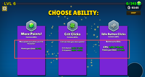 2、点击次数驱动游戏进程,次数越多发展越充分,升级与能力获取紧密关联。