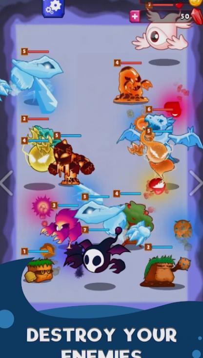 元素怪兽是一款策略类小游戏,进入游戏后玩家们需要根据火、水、木等阵营相生相克关系完成放置、对战、合成升级等操作,到后期还可以解锁宝箱,提供大量的金币可以用来解锁、合成道具喔!提高所属阵营战力值,拿下最终的胜利!游戏玩法非常简单,感兴趣的小伙伴们快来下载试试吧!