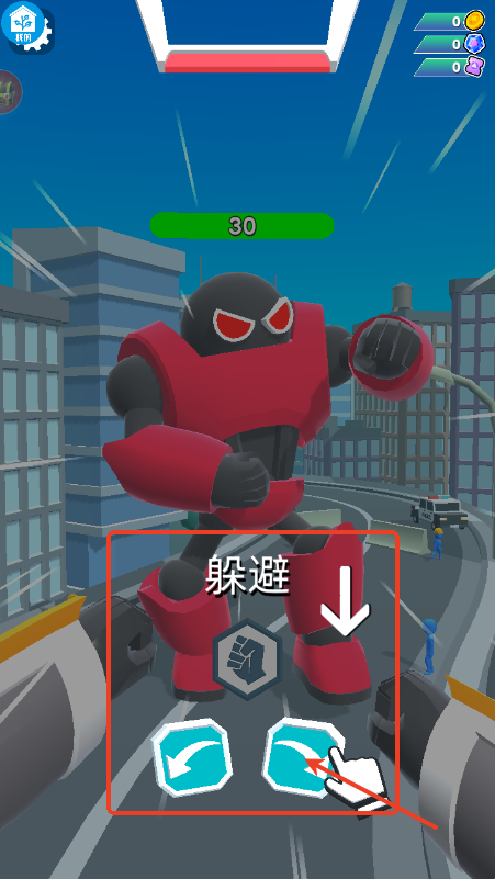 2、根据游戏提示右边是躲避、