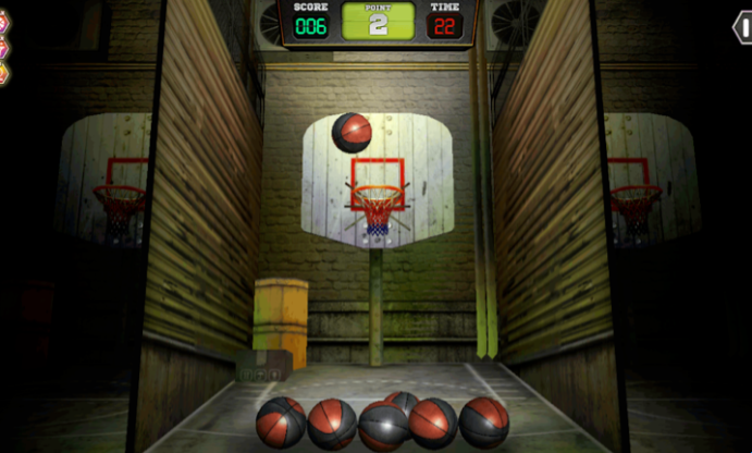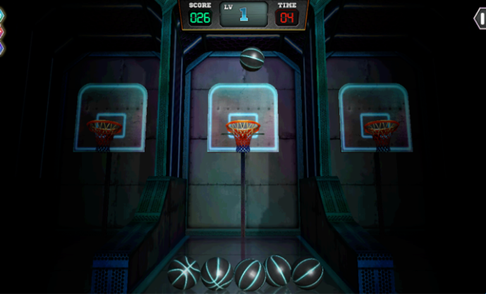 玩法很简单,不听的拿起篮球去投篮就可以了,在规定的时间内达到相应的分数即可进入下一关;