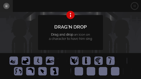 1、通过拖放不同道具至角色生成对应音效,实时试听并调整搭配,逐步构建完整音乐轨道。
