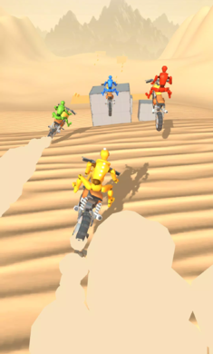 2、控制各种摩托车,以人体模型作为你的骑手。穿越险峻的下坡路径,保持摩托车平衡,对抗重力,冲上坡道,完成惊险的跳跃和翻转!