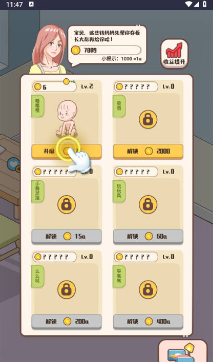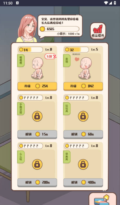 花不完的钱是一款模拟妈妈照顾宝宝的小游戏,进入游戏后一切从零开始,前期会有文字提示,根据根据任务一步步来,每完成一项都可以获取奖励,可以用来解锁新道具,然后就开启你的云养娃模式吧!游戏玩法非常简单,喜欢这类模拟养娃游戏的玩家们千万不要错过啦!