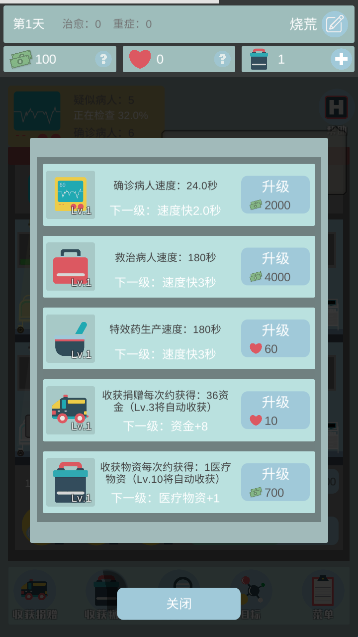 2、使用爱心资源升级治疗速度,提高救治效率。