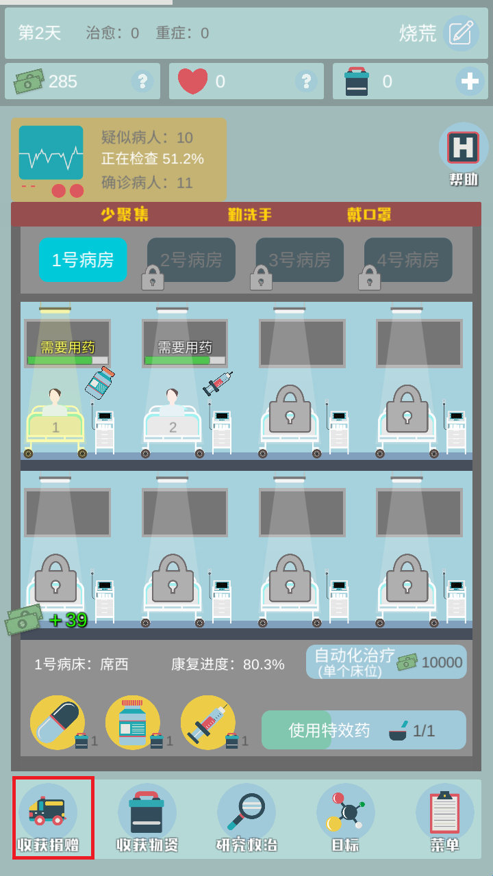 4、及时收集医疗物资,用于研发特效药,提升治疗成功率。