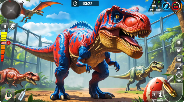 2、在丛林中享受免费的恐龙游戏,并在恐龙动物园攻击野生动物。
