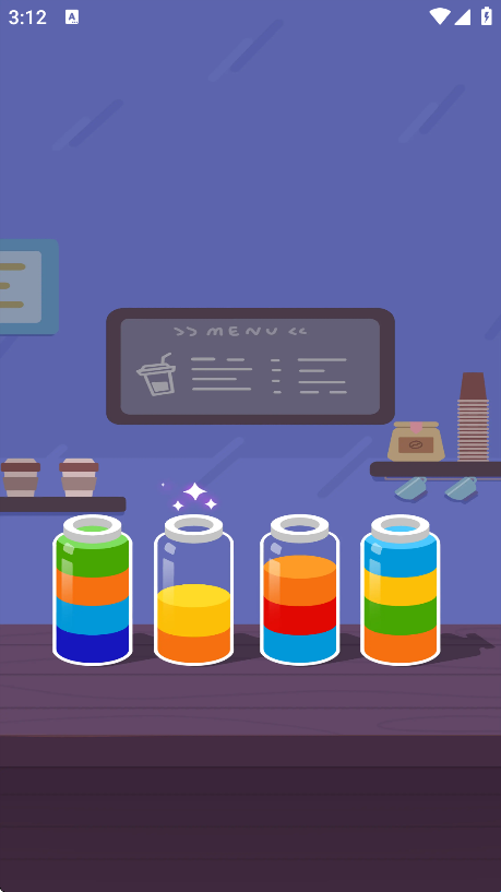 1、目标:玩家需要将关卡中所有不同颜色的水进行分类,使每个瓶子中只含有相同颜色的水。