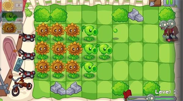 4、种下植物后这些植物会自动攻击进入的僵尸敌人。