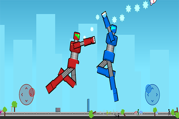 3、丰富的道具与武器:导弹、抓钩等道具可扭转战局,例如用导弹远程轰炸、抓钩拉人摔跤,甚至拔起电线杆当武器。战斗中出现道具时及时拾取,能显著提升获胜几率。