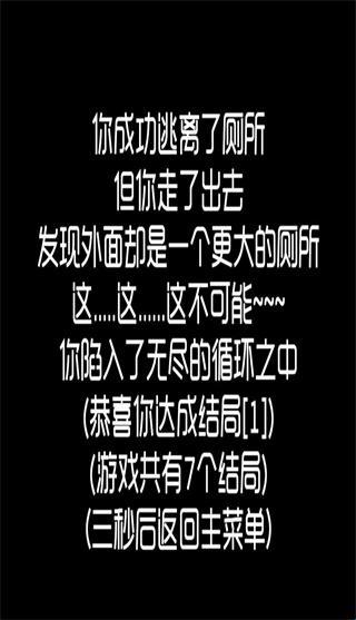 厕锁所有结局走向和相关攻略都已经为玩家们解锁成功,不得不说,这个剧情设定和游戏发展的确很重口味,游戏以厕所为主题,玩家要想逃离这个厕所,就需要根据游戏系统的提示来完成一系列的文字解谜任务,你做出的每一个选择都会直接影响后续发展和游戏的结局,游戏采取文字剧情推动方式,操作简单轻松,看你最终可以通关到哪个结局。