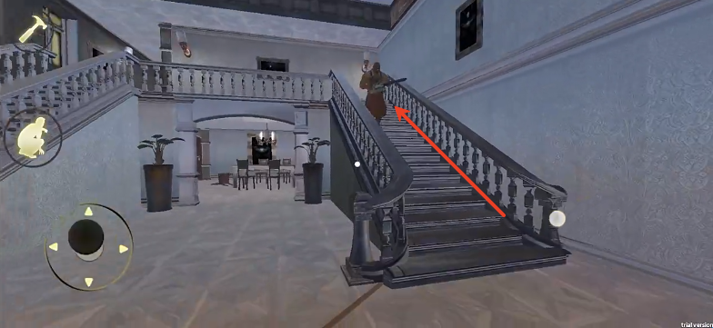 1、游戏以第一人称视角展开,玩家置身于一座阴森诡异的旅社内部,整体环境昏暗压抑,通过虚拟摇杆控制角色移动,增强沉浸式体验。