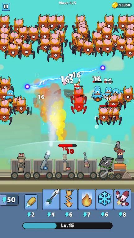 3、运用策略智胜敌人,同时升级以增强你的火车。这不仅仅是一款放置类外星射击游戏——你需要提前计划,并明智地选择防御地点。