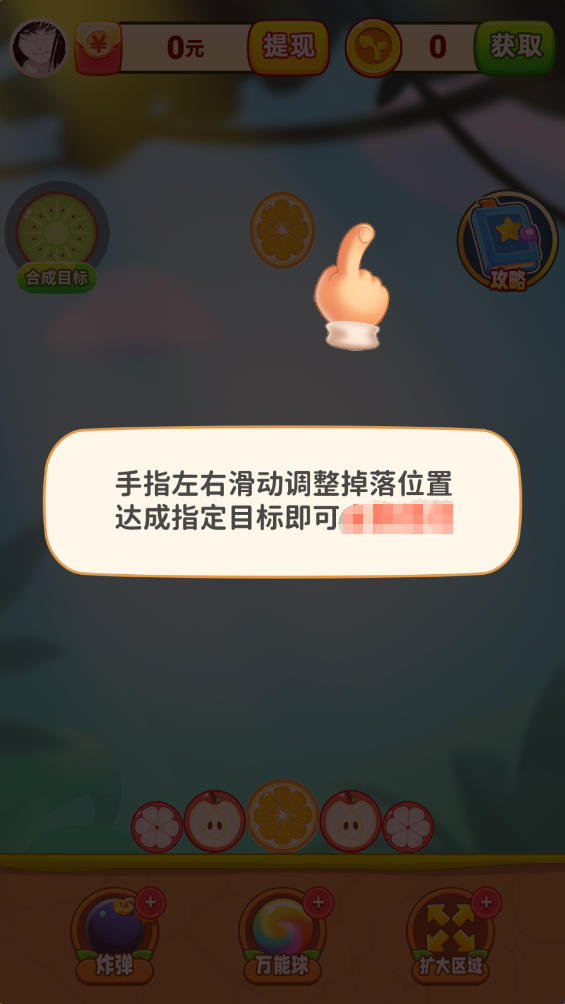 1、基本玩法:玩家需要将相同的水果方块合并成更大的水果。例如,将两个橙子合成一个更大的橙子,再将两个更大的橙子合成一个西瓜。目标是合成最大的水果,通常是西瓜。