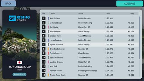 2、赛事界面名次:屏幕左侧显示当前赛事的排名,亦会显示出车手名字、车队(以颜色区分)以及轮胎类型/磨损程度。