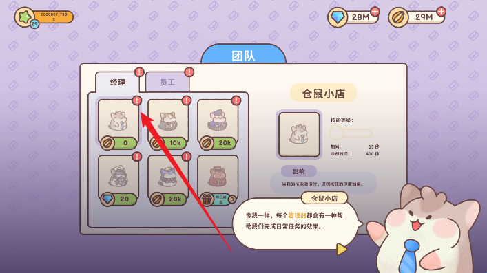 5、招聘各种经理和店员就可以帮助你经营小镇了。
