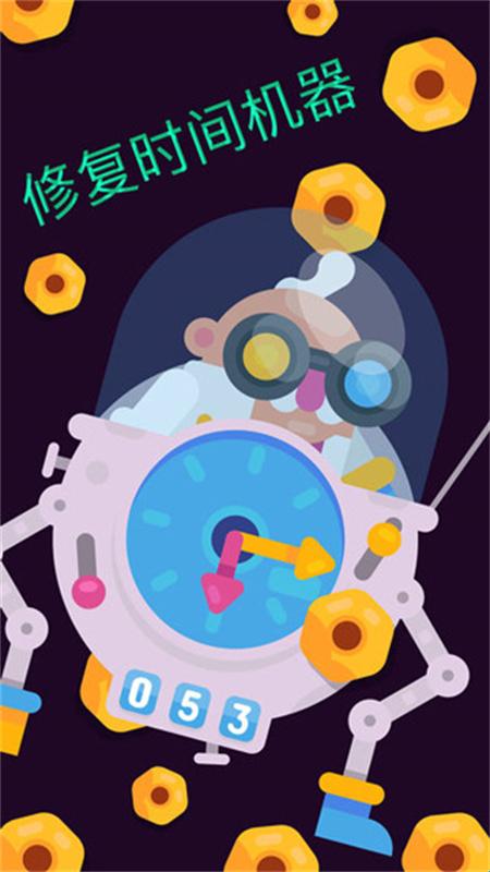 1、首次进入游戏会看到游戏主角,一个可爱的博士正坐在一个钟表机器人的驾驶舱里旋转,这是一段开场动画,可以跳过。