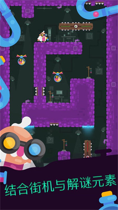 5、当角色在移动的时候如果头顶的位置正对着小药瓶的话点击屏幕就可以释放出和蜘蛛侠一样炫酷的长丝。碰到药瓶的时候就算成功拾取。不过在有的管卡一定要小心里面的机关和弯路。