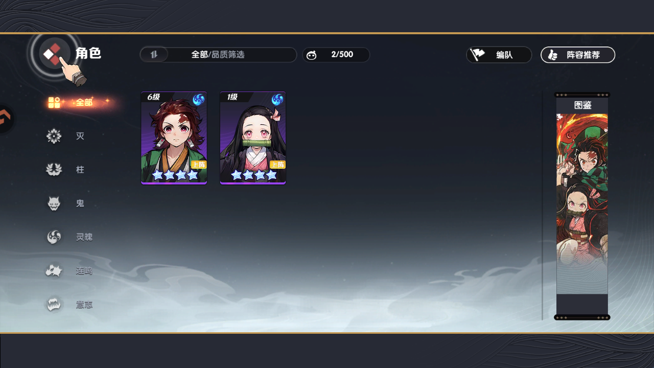 1、卡牌放置:玩家可以收集并培养数十位原作角色,如掌握水之呼吸的炭治郎、使用雷之呼吸的善逸等,游戏提供了极高的阵容自由度,玩家可以尝试不同属性的阵容,应对不同的对战场景。
