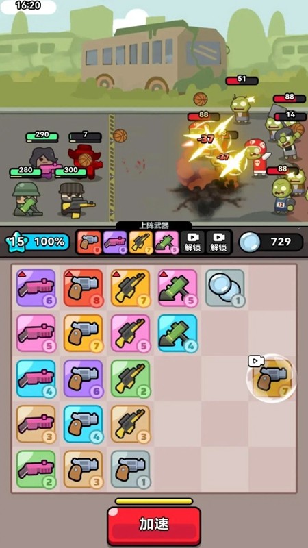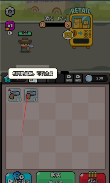 1、创意合成系统:两把相同星级的武器可合成更高阶装备(如两把1星手枪→1把2星冲锋枪),战斗中也能实时合成,瞬间提升战力;