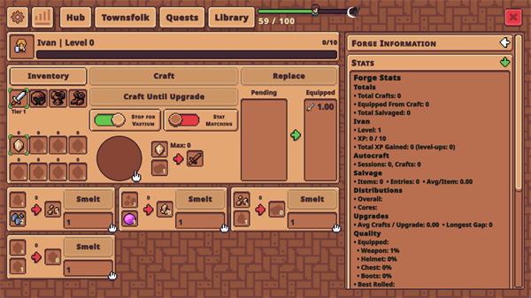 5、点击上方的Townsfolk可以制作不同的武器装备,每次制作都会消耗各种各样的材料。