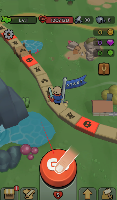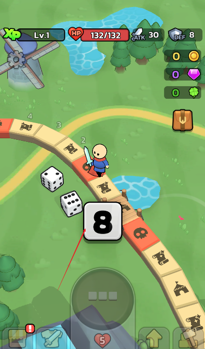 幸运冒险是一款非常好玩的城市闯关守卫小游戏,进入游戏根据提示点击骰子获取前进步数,每个格子代表的内容都是不一样的,非常考验玩家们的策略头脑以及运气,掌握好每次刷新的规律,尽可能多多升级武器、战力值,帮助你顺利通关喔!你准备好开启这次冒险了吗?