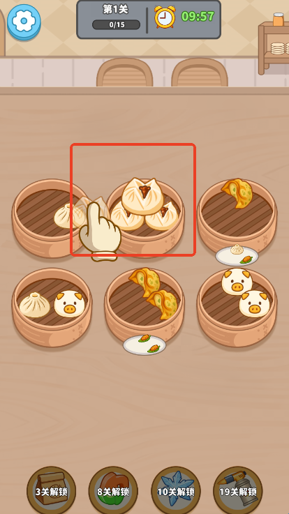 4、剩下的食物放置到相应的笼屉里,完成通关!