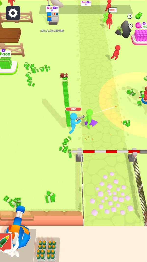 《炮台守卫战》是休闲解压的炮台类小游戏,滑动小人拾取,子弹放置到炮台,使用炮台攻击敌人,获得金币,升级扩大规模,打造强大的城市领地。玩家拖动游戏中的小蓝人,左右拖动到达子弹处拾取子弹,将子弹放置到炮台,对准敌人进行攻击,击败敌人即可获得金币,购买武器,移动小人到围栏外收集金币,同时躲避敌人攻击,即可使用金币扩大城市场地,打造强大的城市领土。