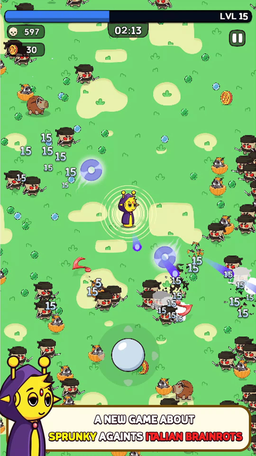 1、核心目标:在敌人围攻中生存,通过收集随机掉落的强化道具提升角色能力