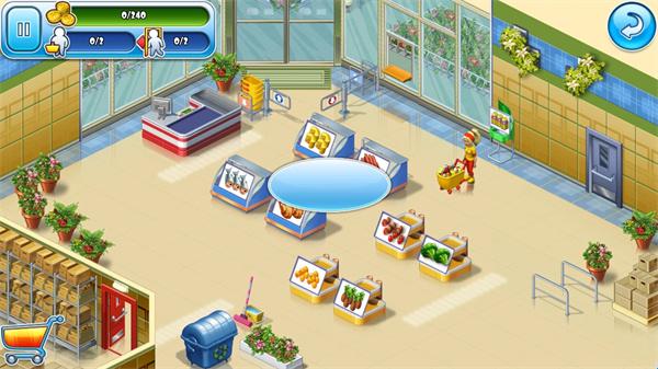 在游戏过程中更新货架,但需要黄金和钻石,这需要你自己赚钱。每次销售一些商品都可以获得奖励,任务获得黄金和钻石,您可以使用它们来更新您的货架,以便商品,可以放在货架上增加,玩家当然不会忙,可以解决其他问题。此外,游戏为您提供了各种级别,每个级别都非常具有挑战性,有超过五十种物品出售,超过两百个升级可以装饰你的商店,走到一起建立一个更美丽的超市!