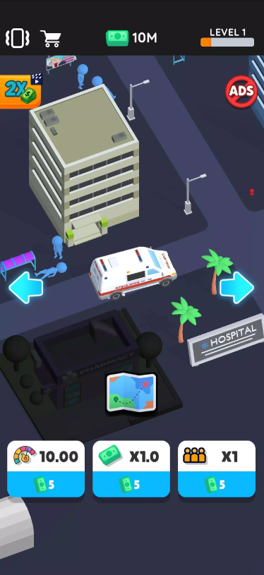 在这款放置点击游戏中,玩家将白手起家经营一家医院。从最基础的救护车升级开始,逐步解锁药房、医疗直升机、医院出租车和餐厅等设施。每一次点击都能加速病患救治,离线期间也会持续产生收益。