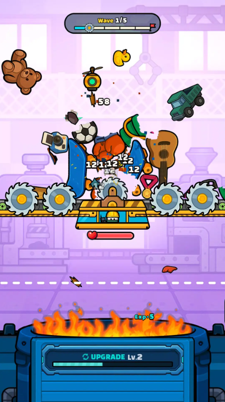这款融合了粉碎快感与机械建造的休闲游戏,带来独特的解压体验。玩家操控高速旋转的粉碎机,将堆积如山的废料转化为珍贵零件,逐步组装属于自己的巨型战斗机器人。