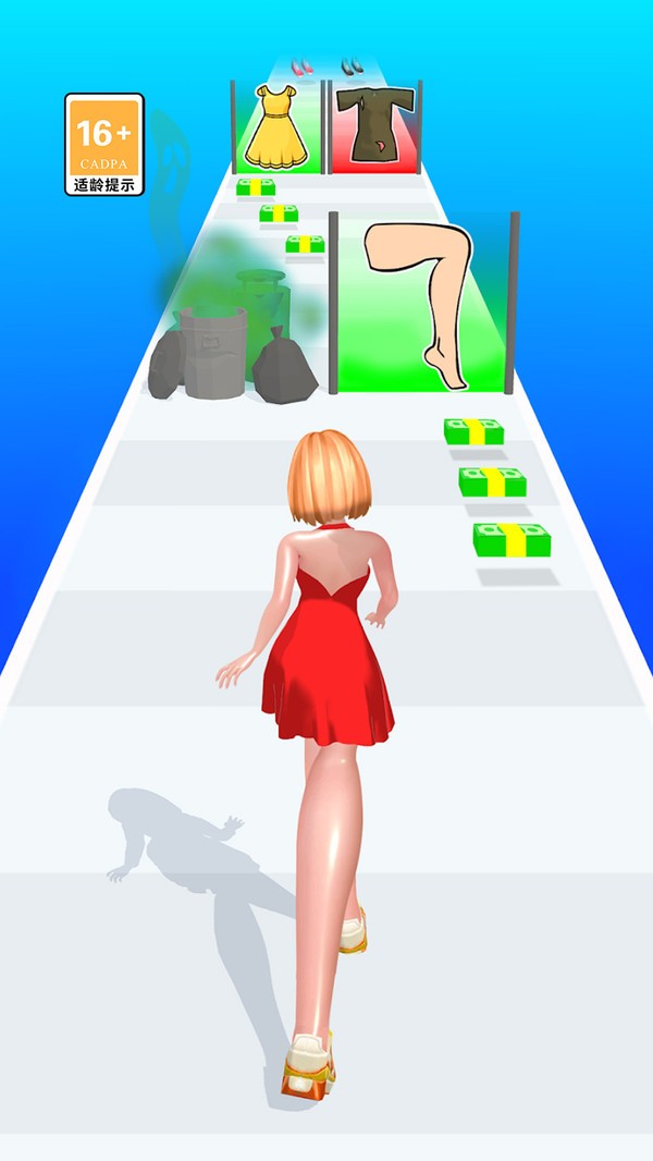1、玩家操控角色在跑道上前进,通过选择时尚元素,体验独特的时尚跑酷乐趣。