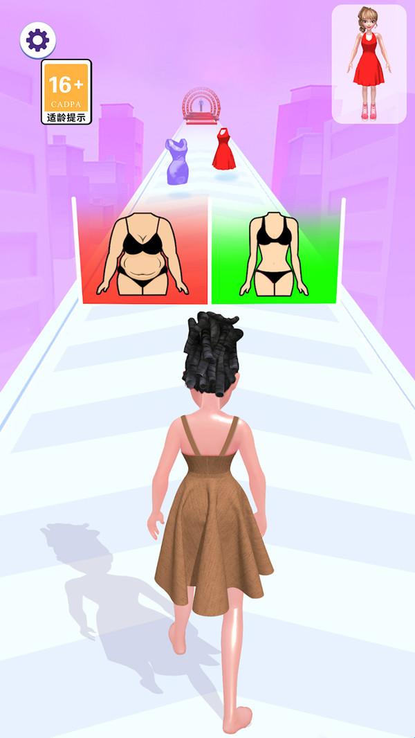 2、跑道上出现不同通道,通道上有各种时尚元素或指示,玩家需根据要求选择正确通道。