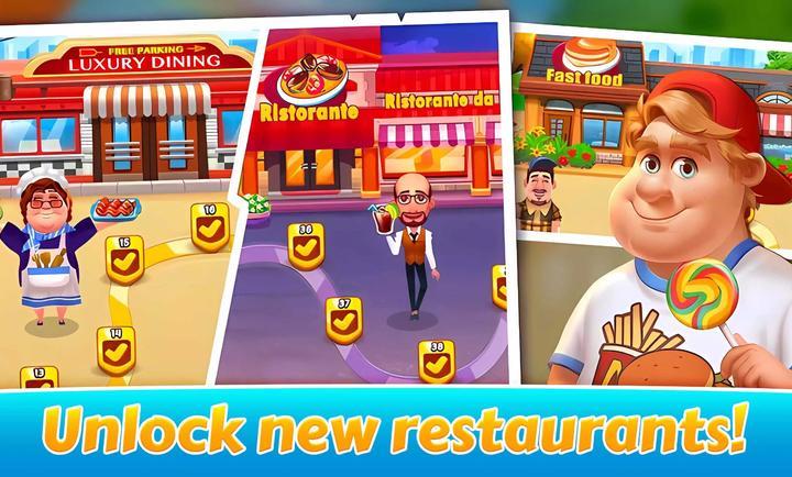 3、超过67家主题餐厅和2000多个关卡:从墨西哥的火辣香料到巴黎的美味佳肴,每个地方都带来全新的烹饪挑战!探索数百种食材,精通300多种食谱,并在游戏的全球地图上探索,解锁激动人心的新区域。