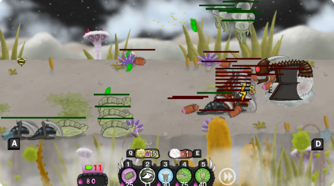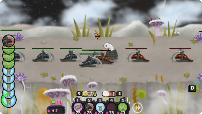 玩家将要扮演一名虫群的女王,通过生产不同的虫族抵挡敌人的进攻并击杀敌人,每种昆虫都有自己独特的攻击方式和特性,玩家需要巧妙的克制敌人获得胜利。