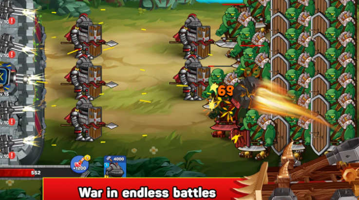 3、升级与强化:玩家可以通过消灭怪物获得金币和经验,用于升级武器、英雄和城堡,提升整体防御能力。