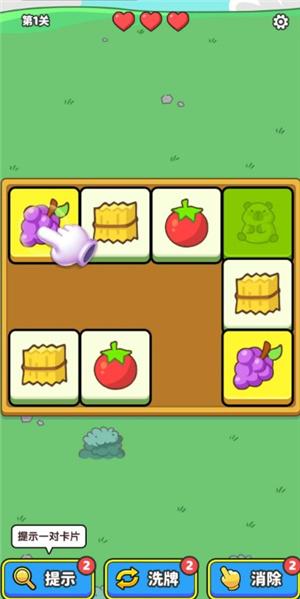 1、下载游戏后,跟随新手引导点击图案相同的卡牌进行消除。