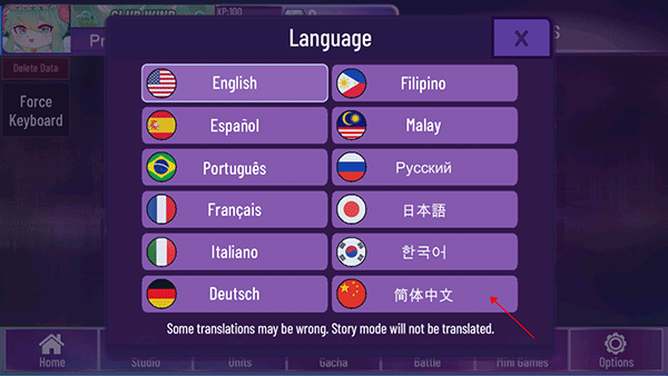1、进入游戏后,在主界面点击右下角【爱心图标】,可以设置【简体中文】;