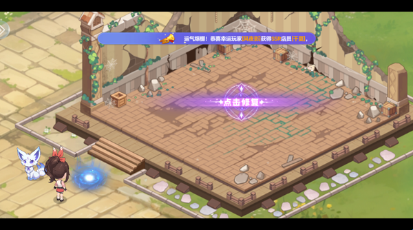 2、完成对话后,点击屏幕提示中的 【修复】按钮,开始对破损的餐厅进行修缮。这是你经营星球美食事业的第一步,也是开启后续玩法的关键环节。