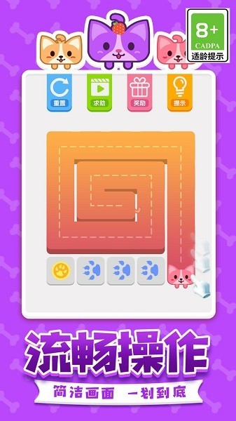 3、玩家必须控制游戏中的小狗不断的进行挑战并且连接所有空白区域才能通过关卡。