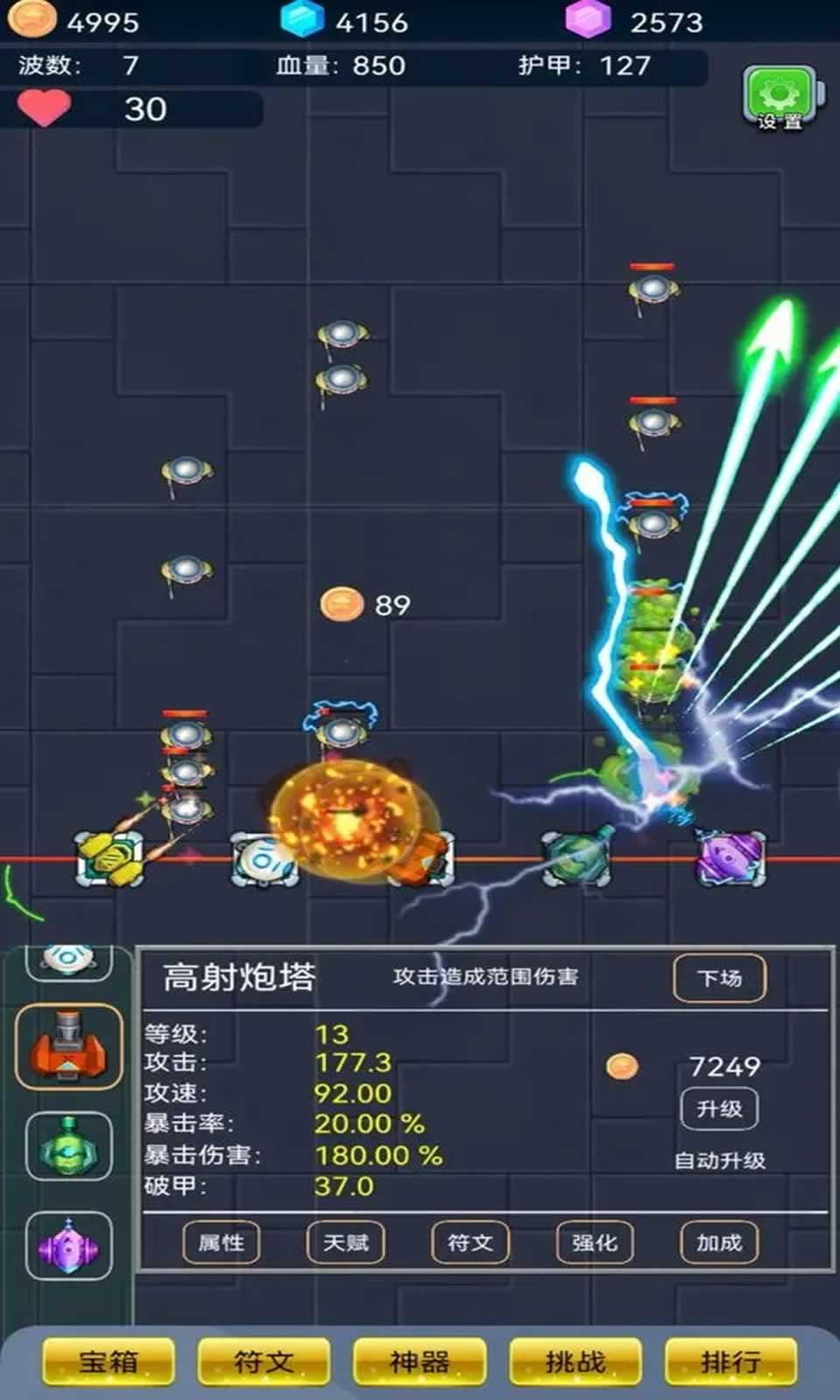 2、当你的防御塔升级到一定等级之后就会解锁新的攻击方式,让你能够对敌人造成大面积的伤害。