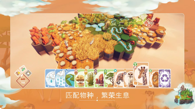 在游戏中玩家需在六边形网格地图中规划生态链,同种动物聚集可获基础加分,而跨物种组合则触发高额奖励,倒逼玩家平衡生态结构。每周挑战模式持续更新任务,此外,照片系统支持实时截图分享,玩家可导出生态全景图参与社区评选,解锁限定装饰道具。对3d建造感兴趣玩家可以下载尝试一下~