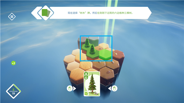 3、在刚才降雨的格子中选择树木卡牌进行种植。