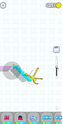1、游戏规则简单却不平凡。你的布娃娃翻滚、坠落和碰撞你设置的障碍物的次数越多,你收集的金币就越多。