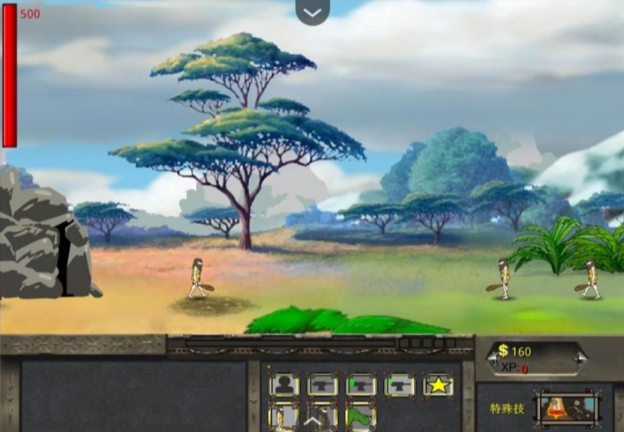 在《战争进化史中文版(flash移植)》中,玩家通过鼠标点击游戏界面的不同菜单项,选择和生成各种兵种。