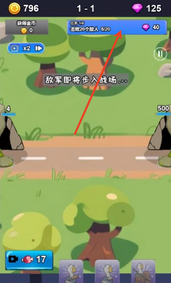2、根据上方关卡提示,击败20个敌人