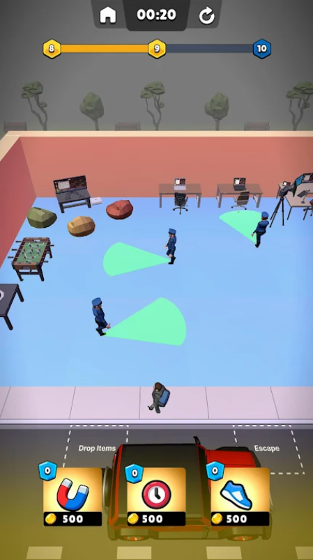 《终极小偷模拟器》不仅是一次简单的偷盗行动,它更需要你具备隐身的能力。在不同的地图中,装满贵重物品的房屋、办公室和仓库都在等待你的光临。利用环境的遮掩,悄无声息地取走珠宝、现金和其他奢侈品,让警卫毫无察觉。每一次成功的盗窃都会增强你的自信,也让你积累更多的经验。